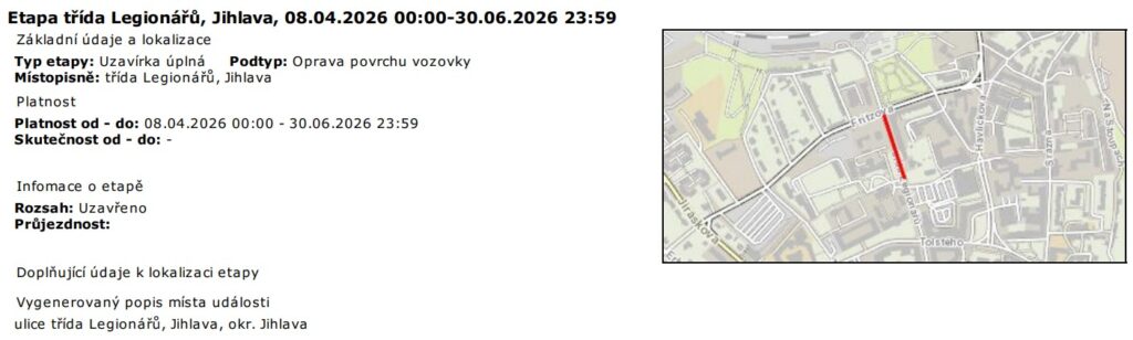 UZAVÍRKA SILNICE PŘED PORADNOU V JIHLAVĚ – DUBEN až ČERVEN 2025